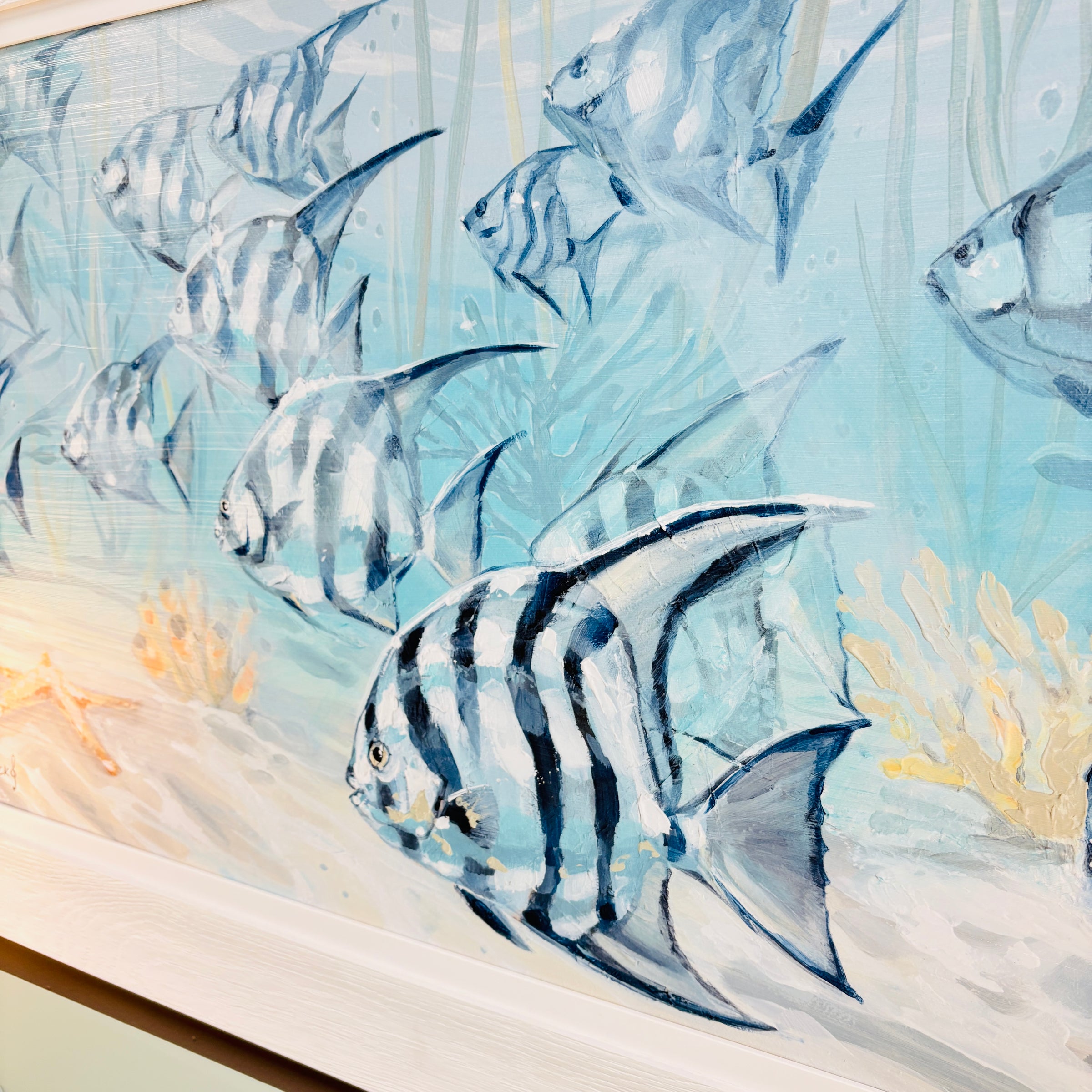 Size/Frame/Matte: 59"x25"/White/ White: Left Facing Fish