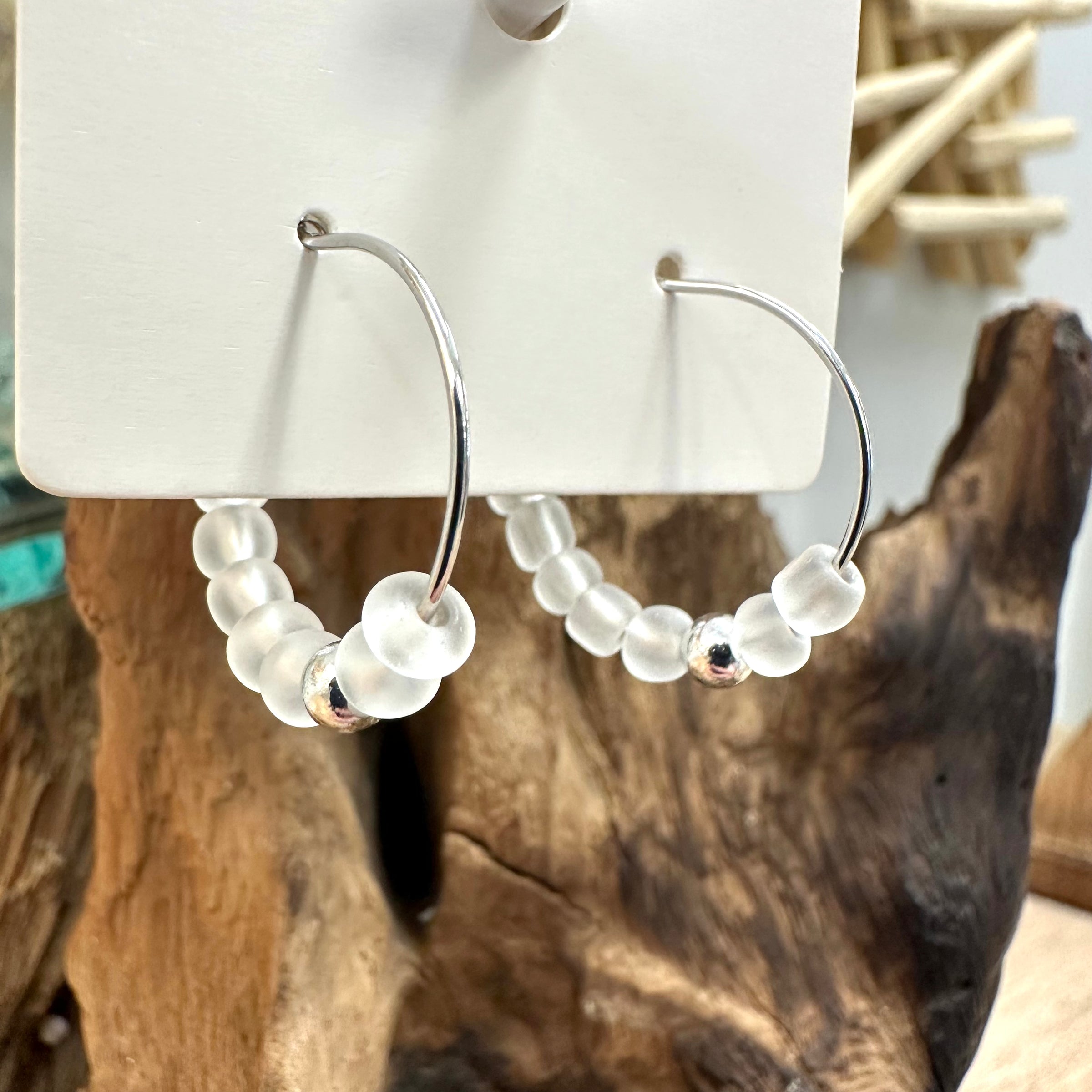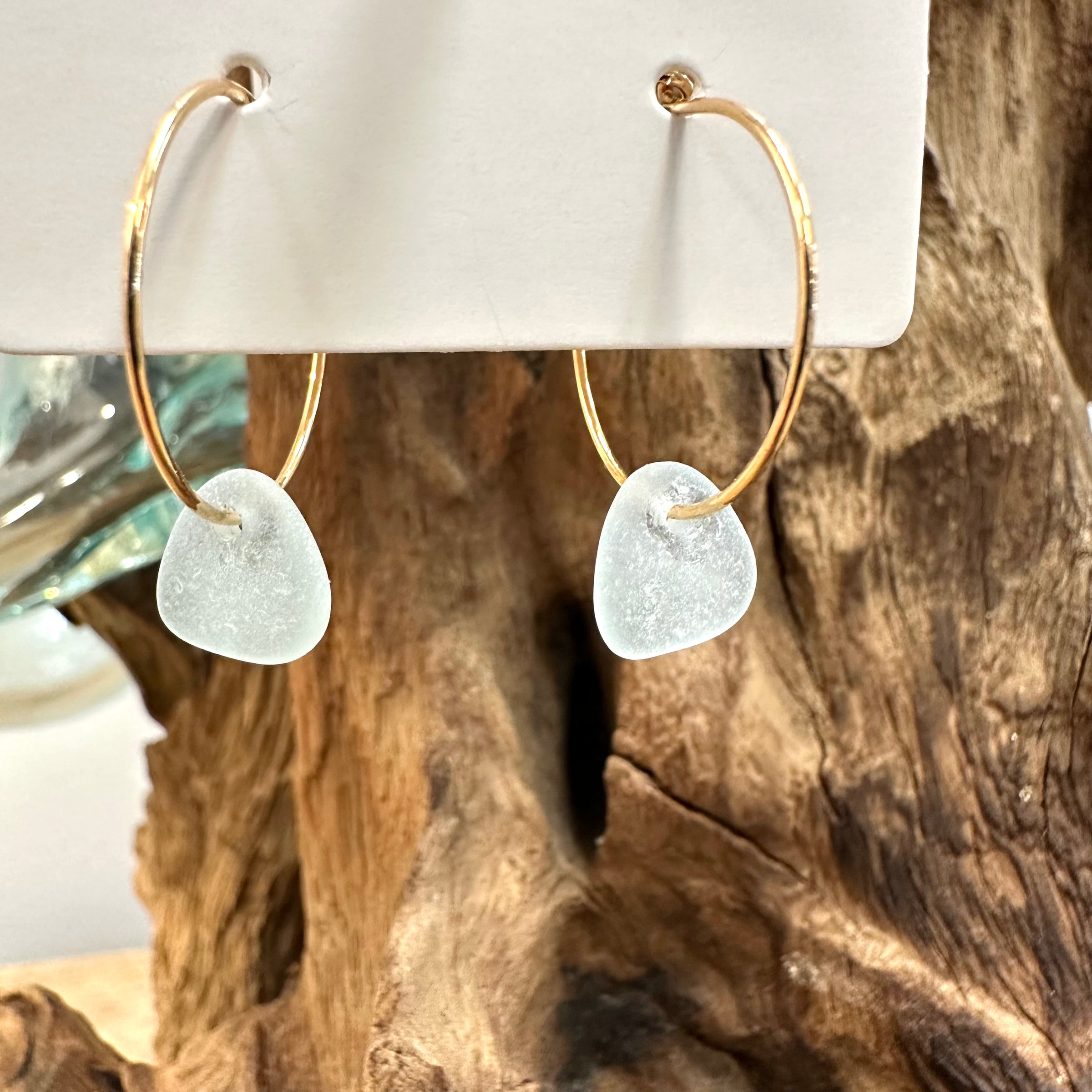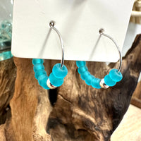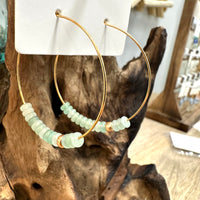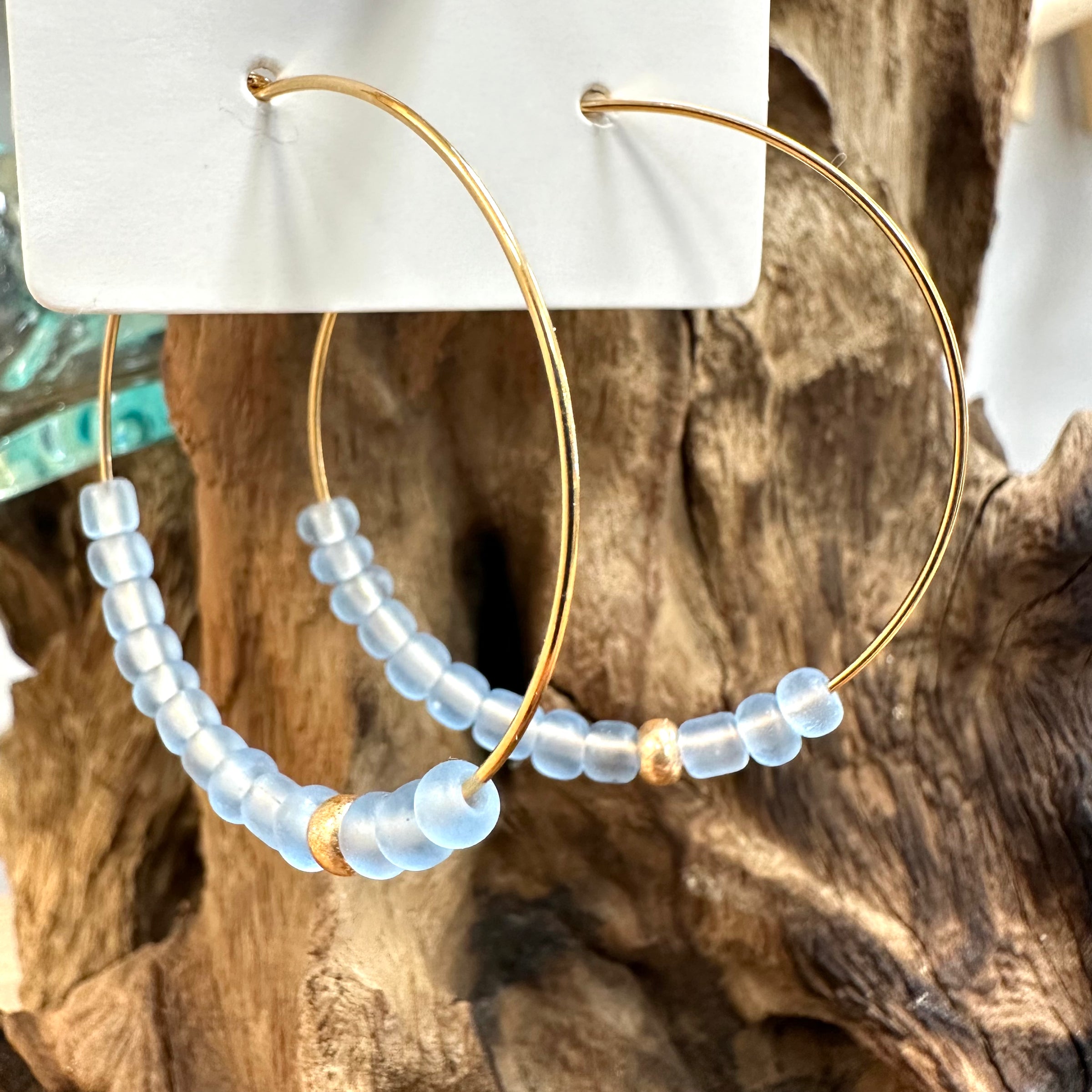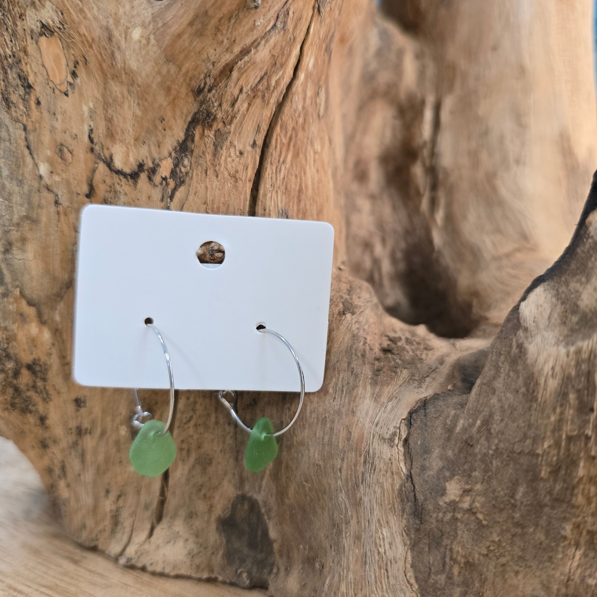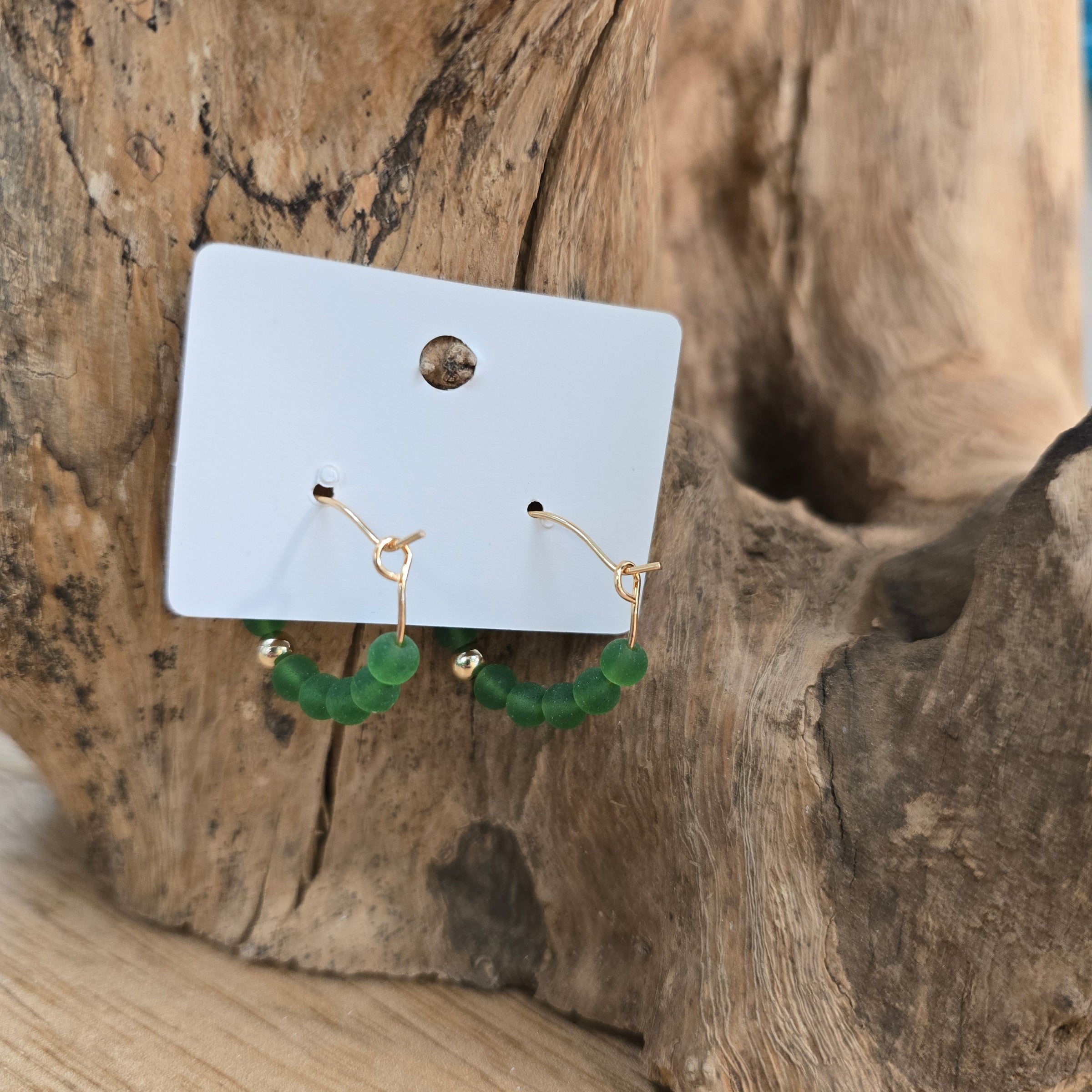 Sea Glass Bead Hoops: Gold/Dark Green Seed beads