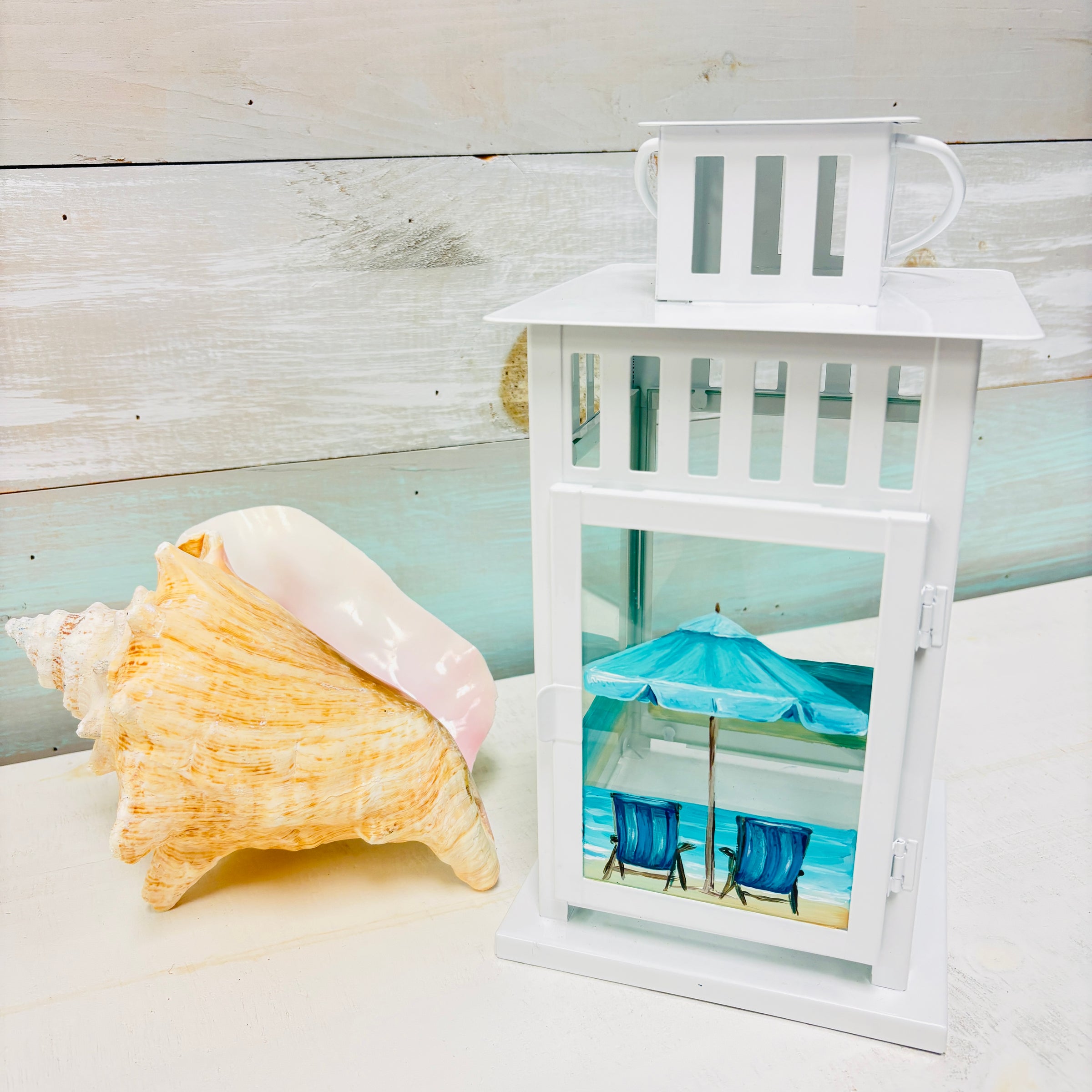 Indoor/Outdoor Hand Painted Metal & Glass Panel Lantern