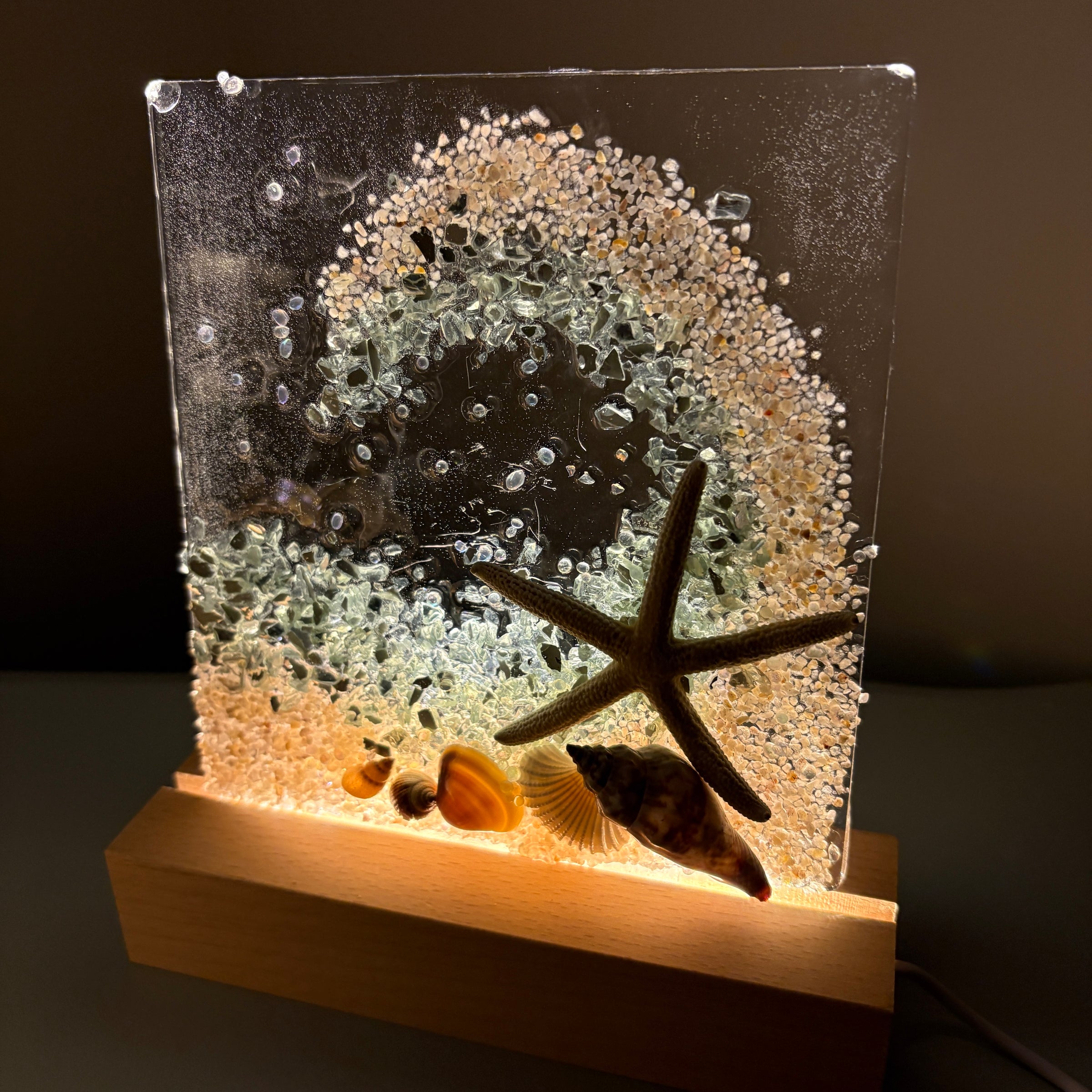 Acrylic Panels for LED Lights w/ Coastal Designs in Glass, Sand, Shells Resin