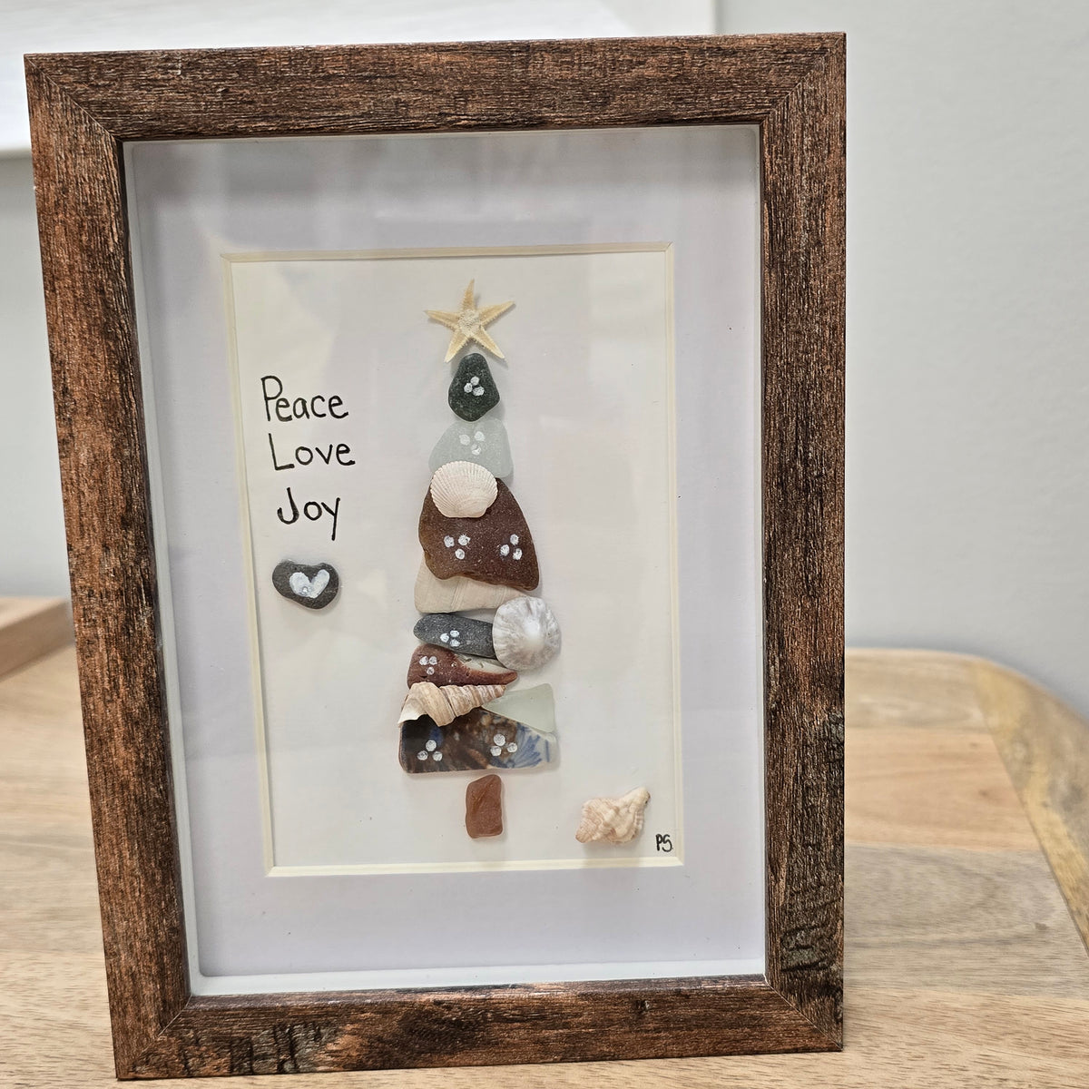 Assorted Christmas Trees Framed Seashell & Driftwood Art