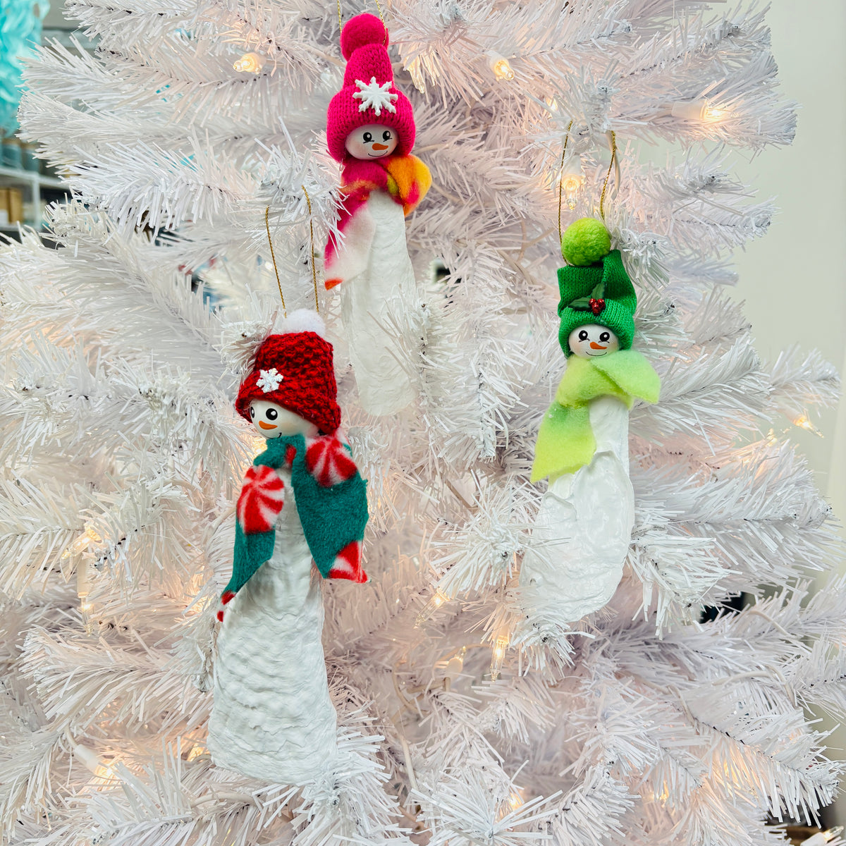 Assorted Stacked Sea Urchin Snow People Christmas Ornaments