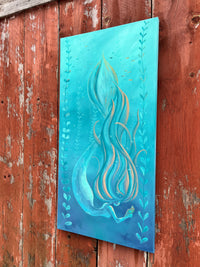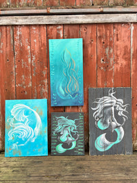 - Ombre water background highlights this inquisitive mermaid reading with the school... of fish.