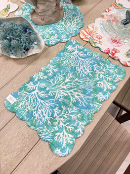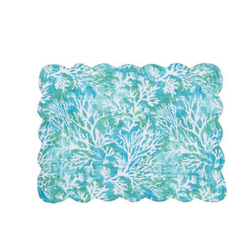 - Coastal inspired quilted, reversible placemats in 18.5"x 13", or 16" round