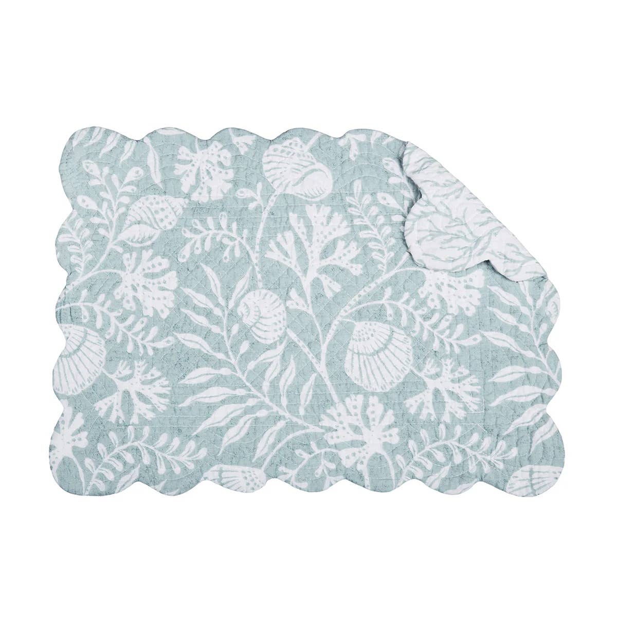 - Coastal inspired quilted, reversible placemats in 18.5"x 13", or 16" round