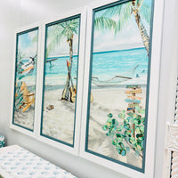- Each Panel 23"x 47", White frame /Coastal Blue Matte