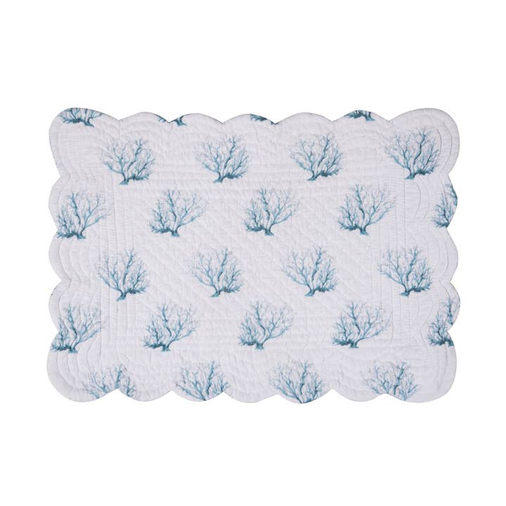- Coastal inspired quilted, reversible placemats in 18.5"x 13", or 16" round